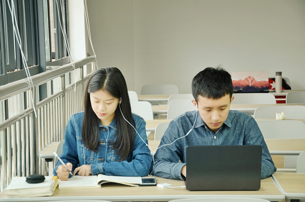 考研期间,李康辉一直在文法学院四楼的考研自习室备考,一待就是一整天。毕雨露恰巧在文法学院三楼担任普通话测试站的助管,奇妙的缘分使得情侣两人以楼上楼下这样的形式陪伴着对方,一直延续到李康辉备考完毕。