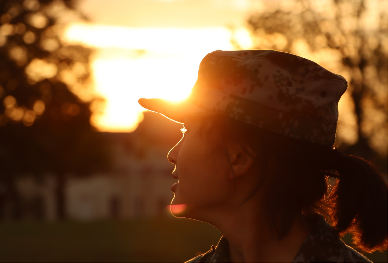 一身迷彩,变的是颜色,不变的是重量;一套服饰,变的是身份,不变的是责任。返校后,我有幸能参与新生军训工作,成为他们口中难得的“女教官”,而这只是一个开始。在今后的学习和工作中,我也会牢记军人本色,努力发挥老兵余热,做到退伍不褪色!