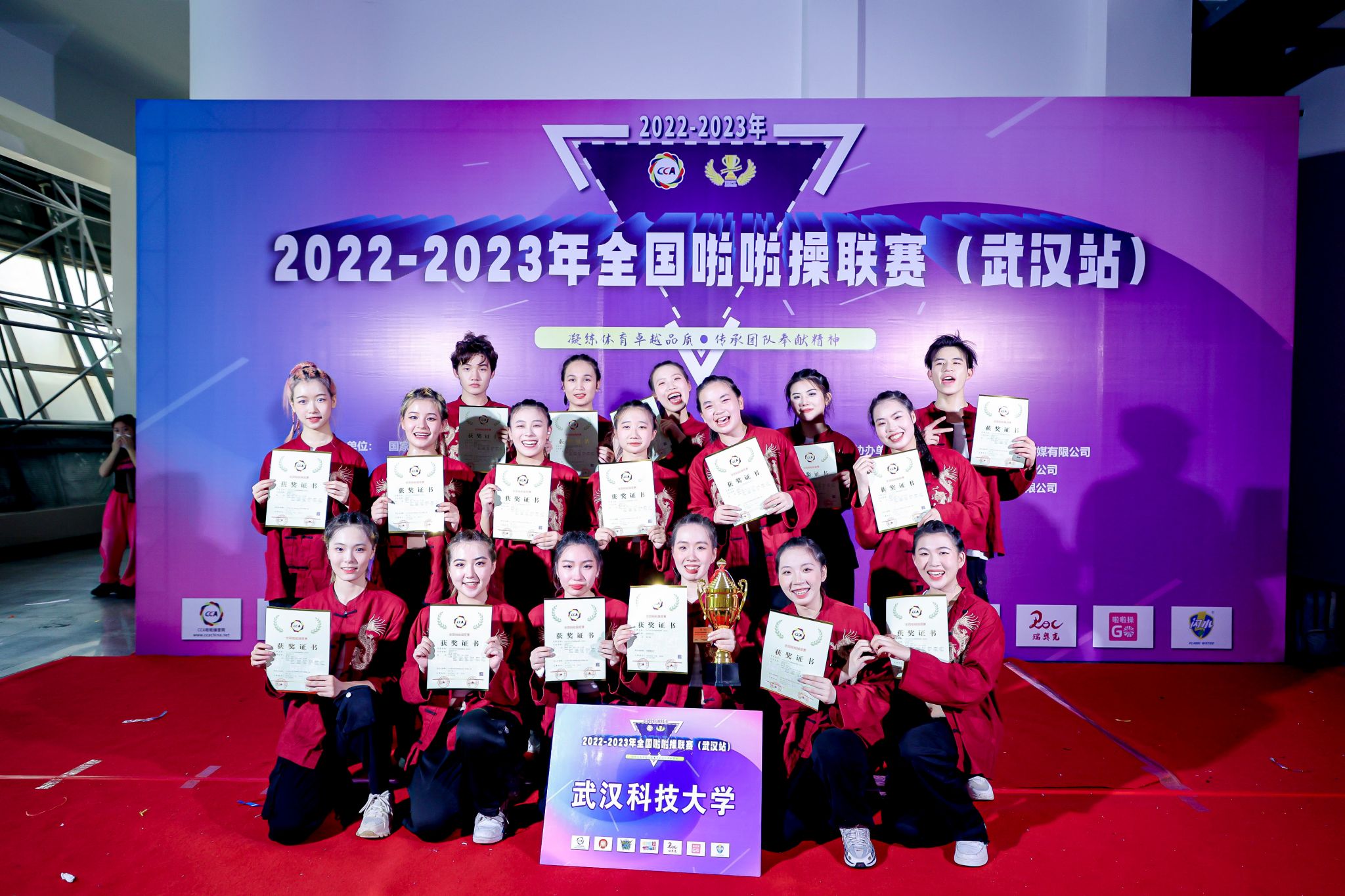 在体育学院、校团委领导的大力支持下,由永利官网饶雯轩、张高越、朱钰铭等17名学生组成的啦啦操代表队,经过教练姚婕、曹琪、张瑞的专业训练与指导,在高手如云的赛场上,以酷炫而富有感染力的表现、整齐一致的动作获普通高校街舞啦啦操4级动作组冠军。