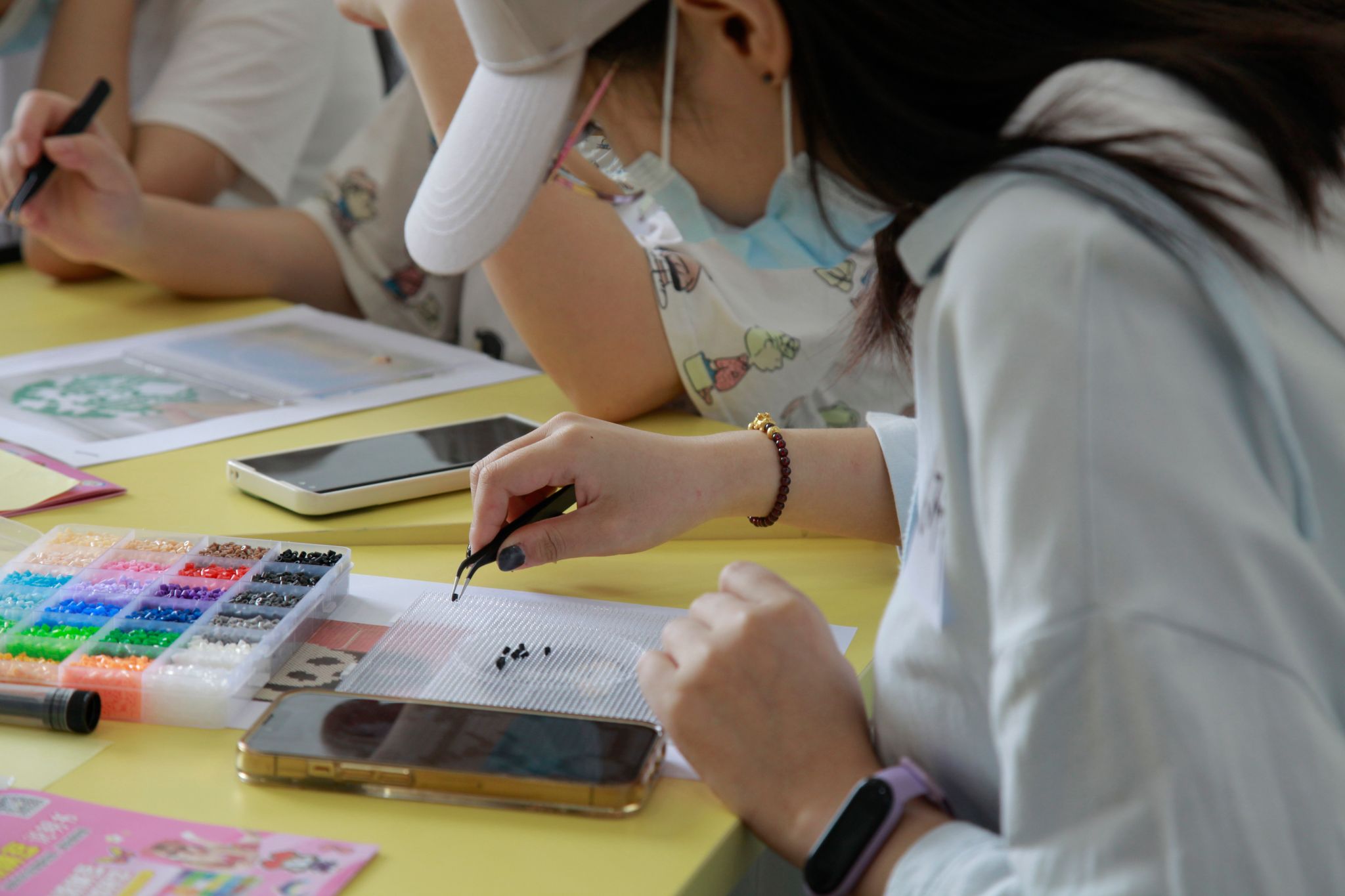 会心团辅室里,毕业生们用“拼豆豆”来DIY自己的毕业礼物。“希望你们都能把自己的理想拼出来!”活动带领老师薛春艳说道。学生们构思好自己的作品后便拿起了镊子,在模具上一粒一粒地拼起了豆豆。管理学院1902班学生吴国艳选择将永利官网校门作为自己的作品,她分享道:“毕业之后就要回家了,可能也不会回到武汉了,所以想拼一个学校,给自己一个留念。”