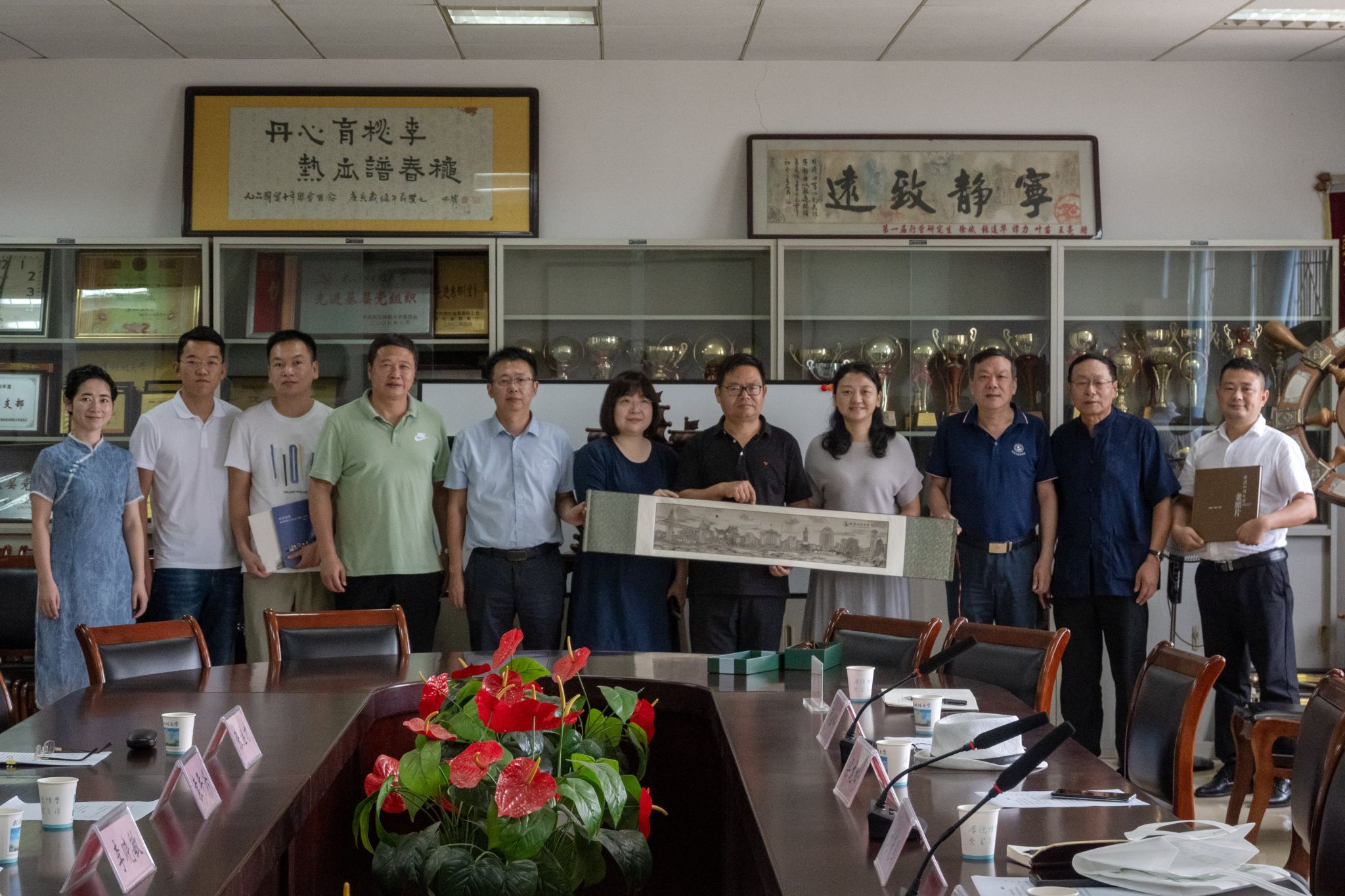 杨彦代表永利官网给贵州兴义领导赠送礼品,其中包括永利官网校史著作与照片,画卷。