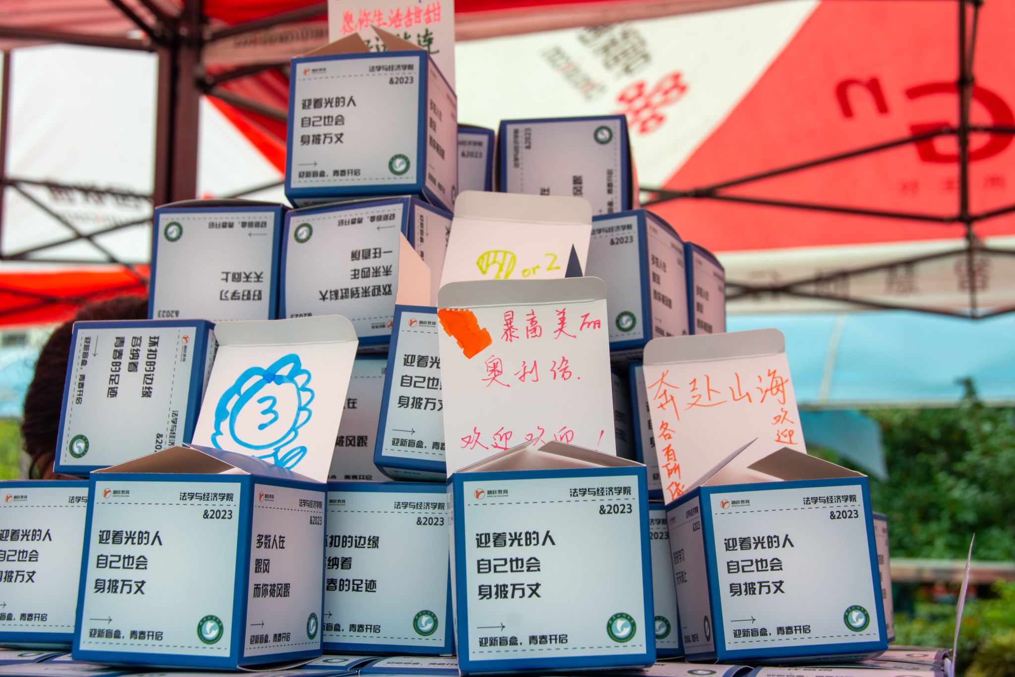 法学与经济学院准备了新生盲盒,盲盒上写有高年级学生对新生的寄语,新生一打开就可以看见学长学姐亲笔写下的信。“你的人生已经开启新的篇章”“不要辜负人生最美好的四年……”新生易健柯表示:“这些礼物太用心了,我一定会更加努力地学习。”