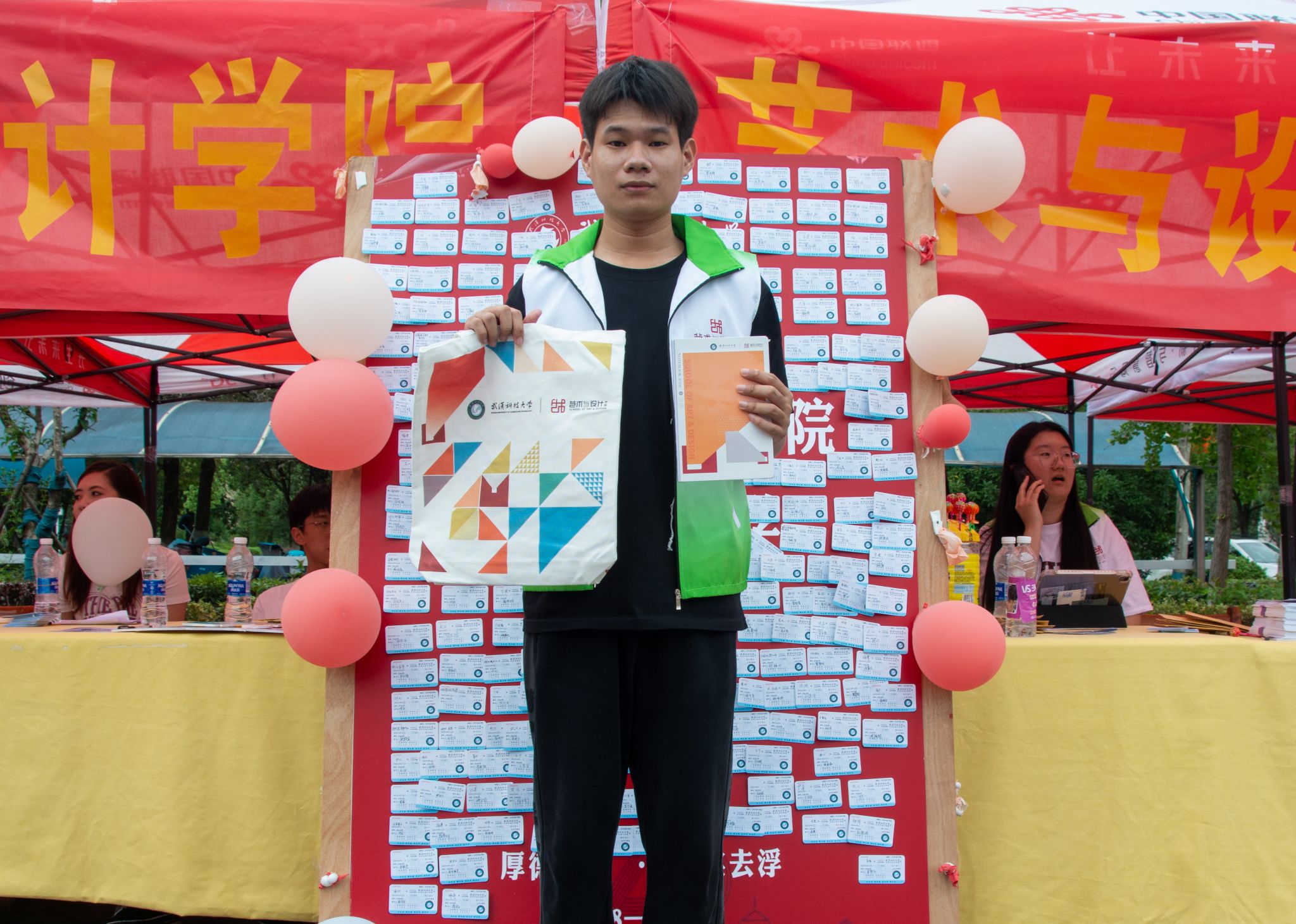 在武汉市街道口地铁站和校内的迎新帐篷处均放置了艺术学院的文创产品。地铁站的沁湖系列亚克力牌以永利官网沁湖为主题,设计出沁湖龙舟、沁湖礼堂、沁湖廉园、沁湖典石等不同的插画立牌,受到新生的喜爱。迎新处的笔记本与帆布袋为该学院视觉传达系教师王伟设计,主体采用暖色调,在笔记本上还印有艺术学院设计的英文字样。该院相关负责人郭成宇表示:“希望这些文创产品能够帮助新生更好地了解学院,了解武科大的文化。”