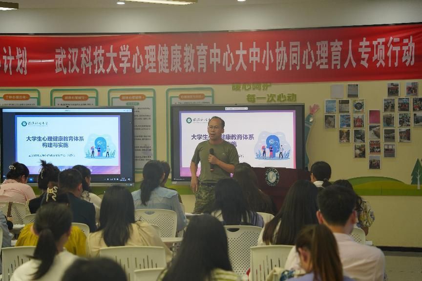 武科大网讯(通讯员胡文燕 摄影范锦涛 陈立威 陈婷)为着力推进大中小学协同心理育人,加强中小学教师心理健康素养,提升心理育人工作实效,2023年9月26日,304am永利集团官网心理健康教育中心应随州市中小学教师(校长)继续教育中心邀请,为60名随州市中小学心理健康教育教师开展为期一天的“省培计划(2023)”兴师培训。本次培训由心理健康教育中心主任卢绍伟老师、心理健康教育中心专职教师薛春艳教授、心理健康教育中心专职教师崔佳老师、心理健康教育中心专职教师贾健宇老师为中小学教师主讲。