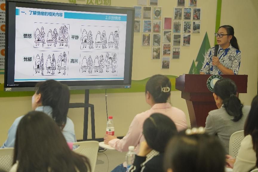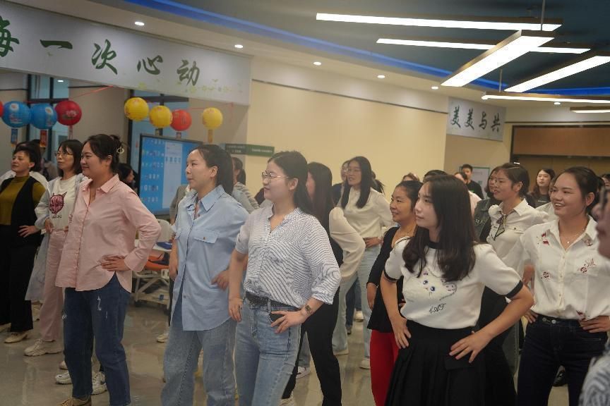 随后,薛春艳教授在接待大厅围绕“心理健康教师如何关照自我情绪”展开专题讲座。薛老师首先邀请老师们对“东西方面点的区别”进行抢答互动,由东西方内敛、外放之分引入上午第一场讲座的主题词——情绪。紧接着,薛老师以情绪种类、概念、要素、特点、区间等方面为大家从多个角度全方面理解情绪本身。通过播放“踢猫效应”的动画视频让在座的老师们充分感受到情绪对个体认知、行为和人际关系的影响,薛老师还向老师们介绍了有效管理情绪的理论知识和应用技巧。在讲座的最后,薛老师以一场《兔子舞》健身操收尾。老师们在运动中不仅放松了身心,更是感受到情绪的自由流动。