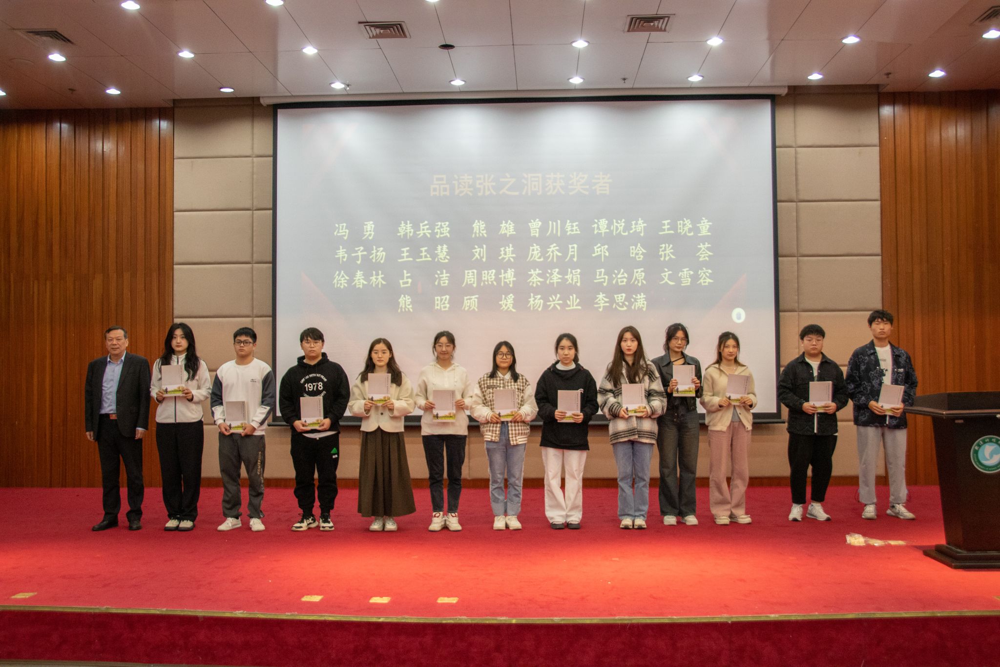 武科大网讯(通讯员李周阳 见习记者邹逸凡 摄影母鑫宇)11月9日,“读学校之史 养浩然正气——品读张之洞”征文颁奖活动暨文集首发仪式在崇实会堂举办,会上张之洞文献馆馆长、法学与经济学院张继才教授为获奖者颁发奖状和文集。