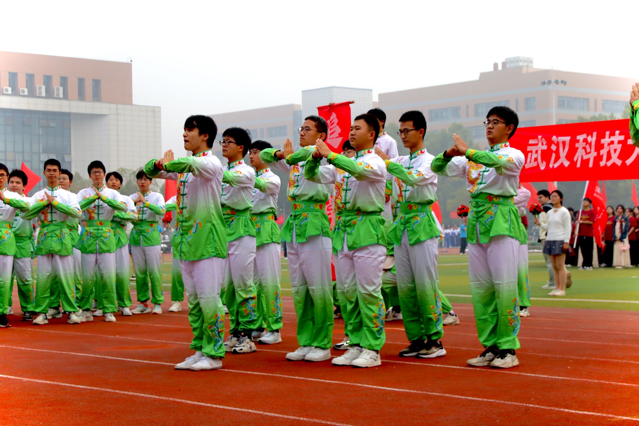 各学院特色方阵让现场观众赞叹连连,直呼:“太磅礴大气了!传统文化和体育融合的魅力震撼到我了!”
