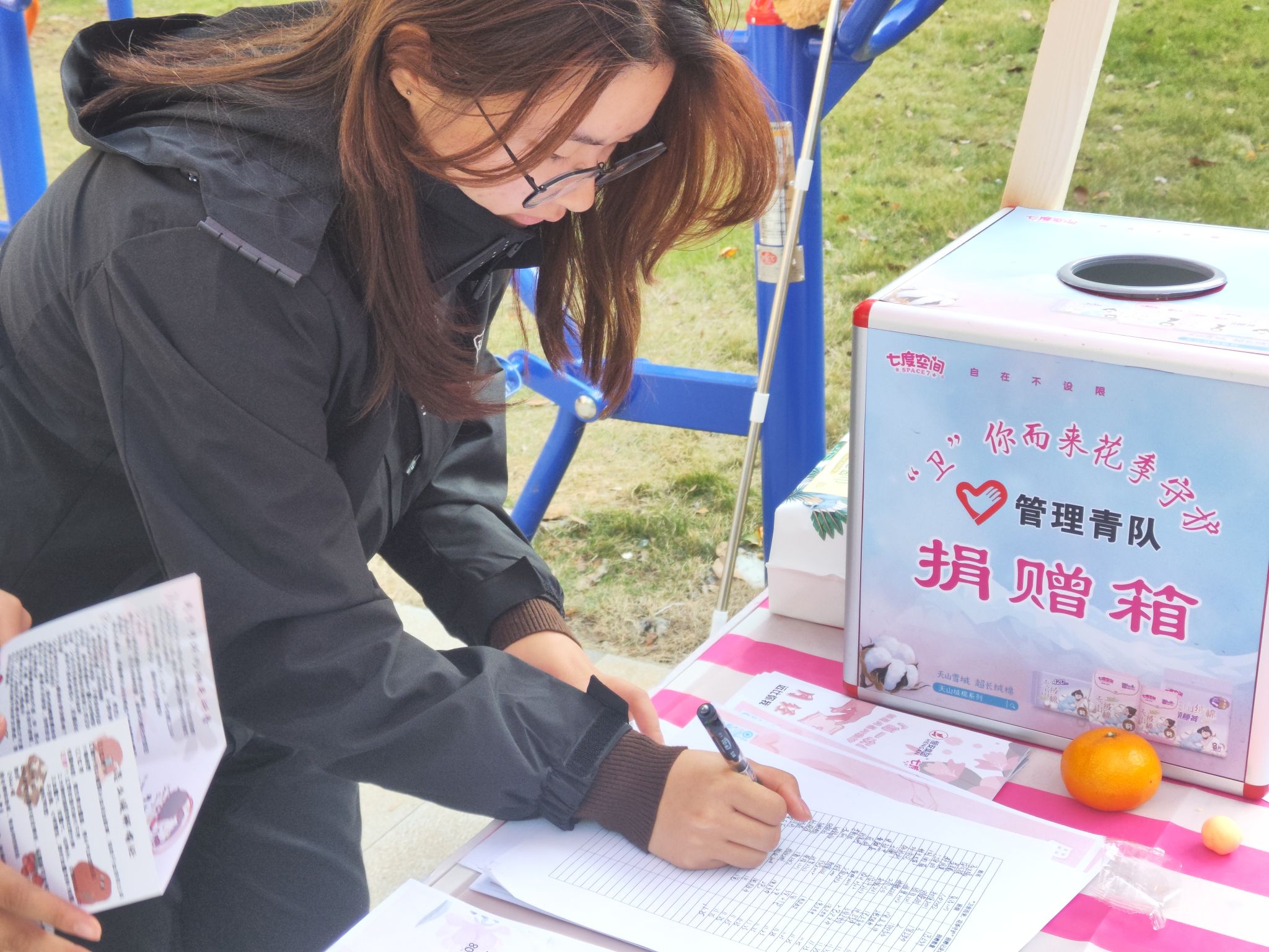 武科大网讯(见习记者宋钦 江子琪 记者欧阳一茗 摄影宋钦)11月23日至26日,永利官网管理学院青年志愿者服务队与国产品牌七度空间在南园“一站式”学生社区和北园商业街携手开展了名为“‘卫’你而来——花季守护”志愿活动。