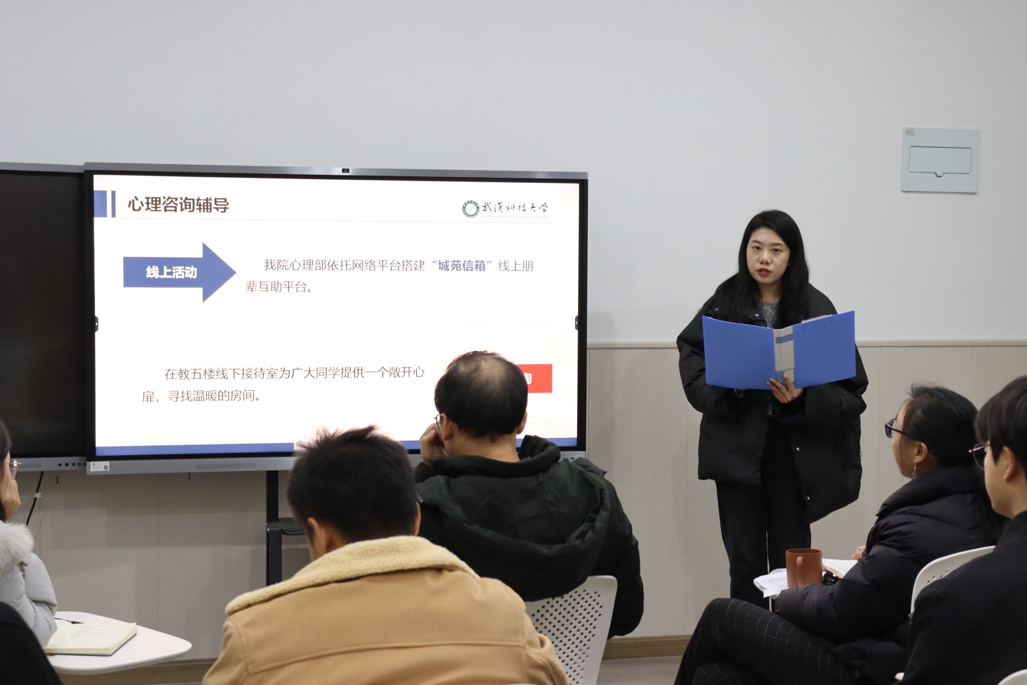 薛春艳对2023年心理危机干预工作进行总结,阐明各学院工作总结的具体内容与标准,她表示各学院可以根据数据统计表做初步分析,展现工作情况。
