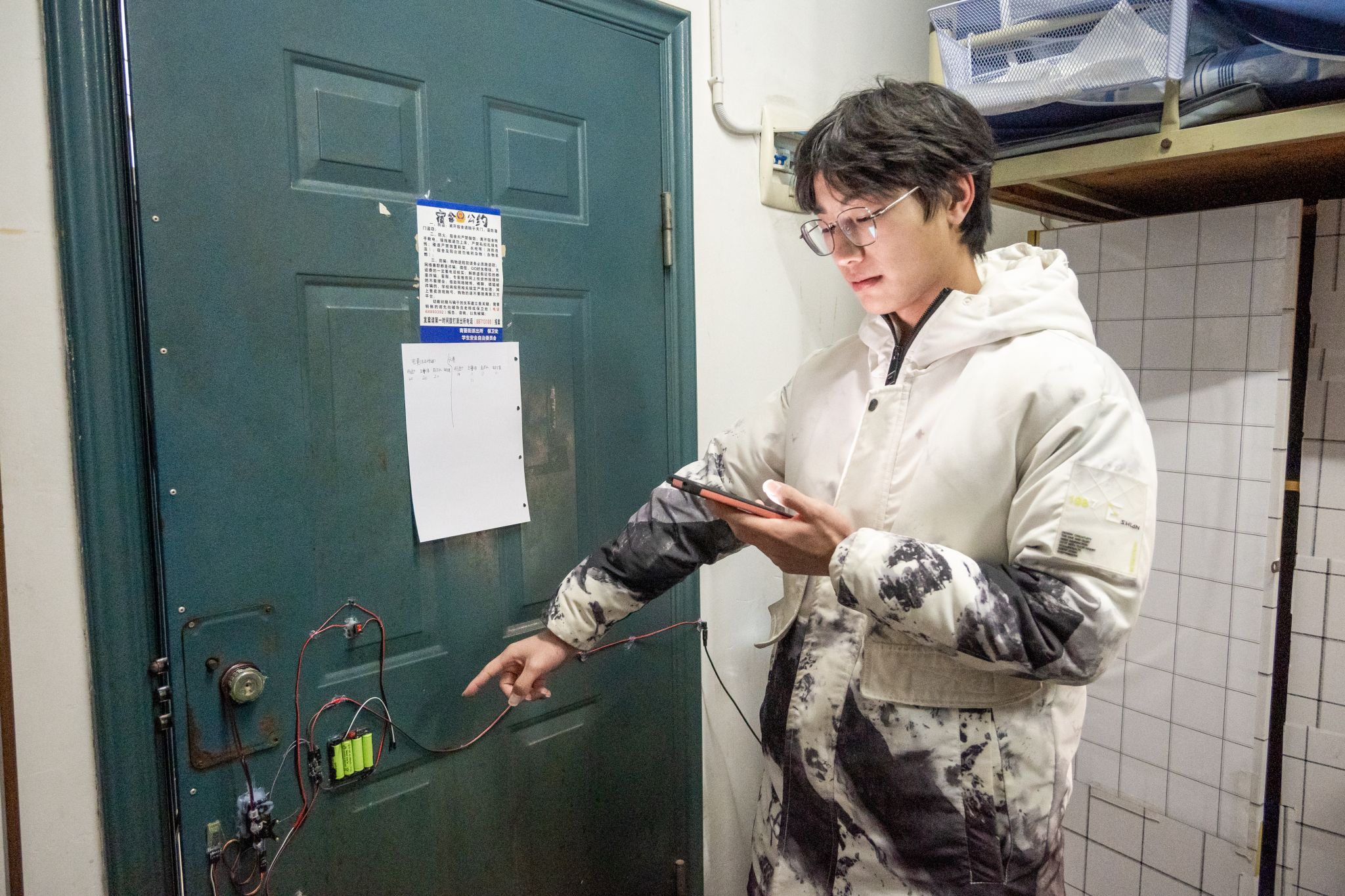 武科大网讯(记者宋钦 通讯员朱艳青 唐思彤 摄影李钰昌)忘带钥匙无法打开宿舍门怎么办?近日,永利官网信息学院自动化类专业的大一学生杨宏广为宿舍安装自动开门系统,可通过手机蓝牙连接并输入密码实现自动开门,从而实现“钥匙自由”。