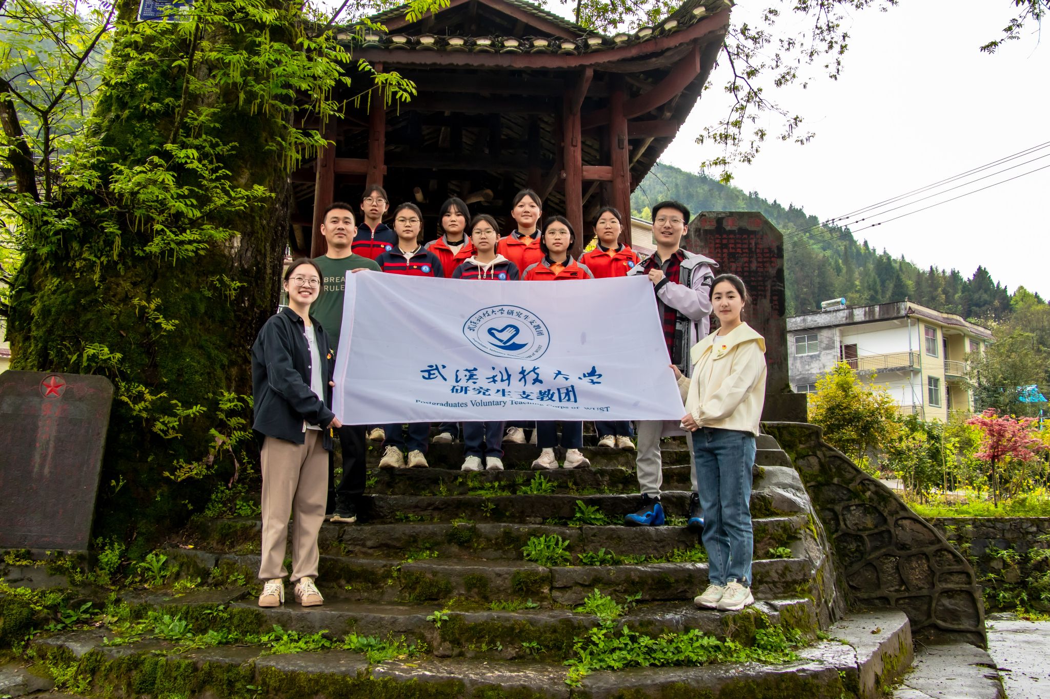 研支团成员同服务地师生以庄严的姿态和崇高的敬意参与祭奠活动。全体参与者一同列队整齐,向革命先烈敬献花圈,并在肃穆的国歌声中,向为国家和民族献出生命的英雄们默哀致敬。
