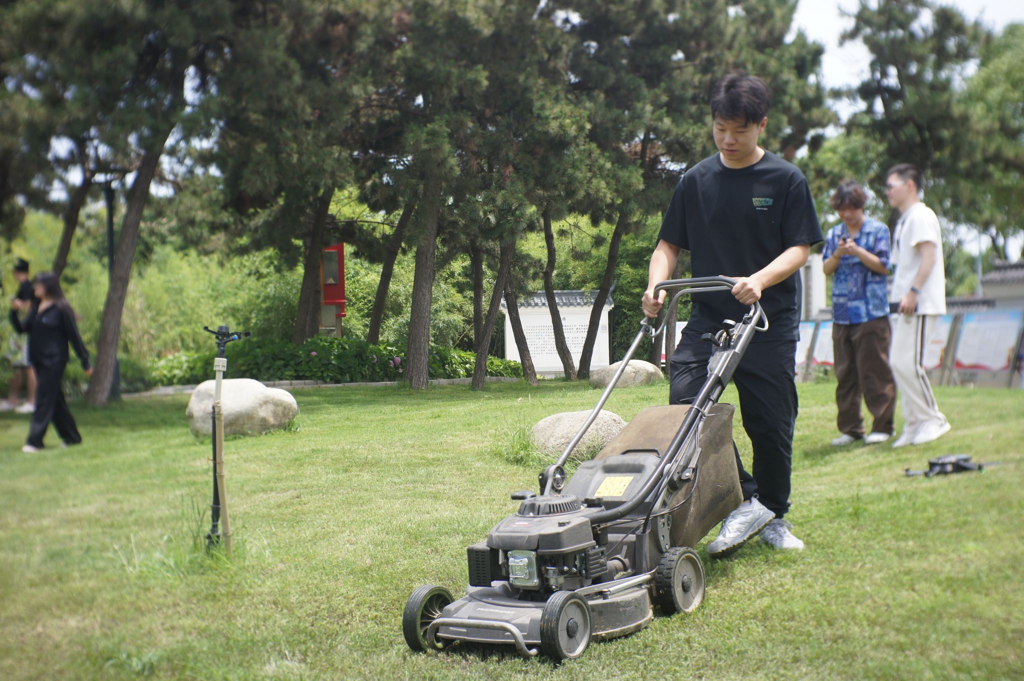 “拉动这里启动除草机,捏紧后把手,机器就往前走。”体育学院2023级学生张新元在后勤集团职工指导下,一把拉动油门线,伴随“嗡嗡”的轰鸣,开始控制除草机前行割草。一开始,除草机的路径歪歪扭扭,熟练后,他能够平稳地推动机器割完一整圈的草。“学生们的干劲很大!我们也不要落后!”永利官网信息科学与工程学院2022级辅导员潘鑫一边操纵机器,一边笑着说。
