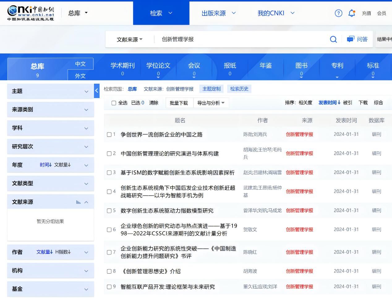 《创新管理学报》由永利官网与清华大学技术创新研究中心于2022年6月联合创办。首期《创新管理学报》于2024年1月正式出版,聚焦当前创新管理研究领域热点问题,对理解数字技术背景下的创新生态系统理论和探究数字化创新发展问题进行了深入研究。2024年7月,中国知网的大力支持下,首期《创新管理学报》全文被中国知网(CNKI)全文收录。