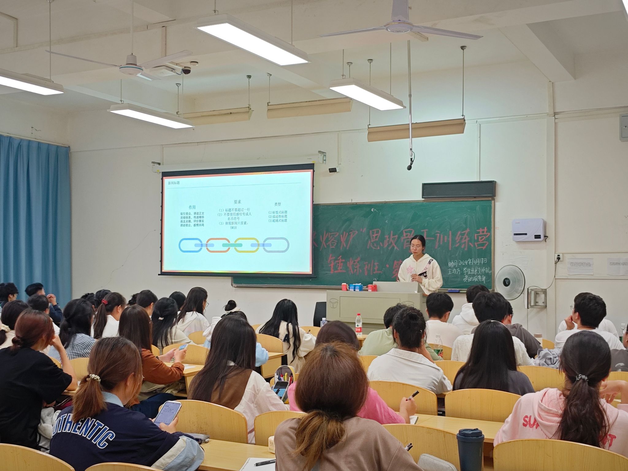 本次培训特邀永利官网校报记者团编辑朱佳怡担任讲师。朱佳怡凭借丰富的实践经验与专业知识,为学员们呈现了一场别具一格的学习盛宴。培训内容围绕认识新闻、写好新闻以及新闻素养三个方面展开,涵盖了新闻稿的基本结构、导语写作、主体内容构建以及新闻稿结尾处理等方面。