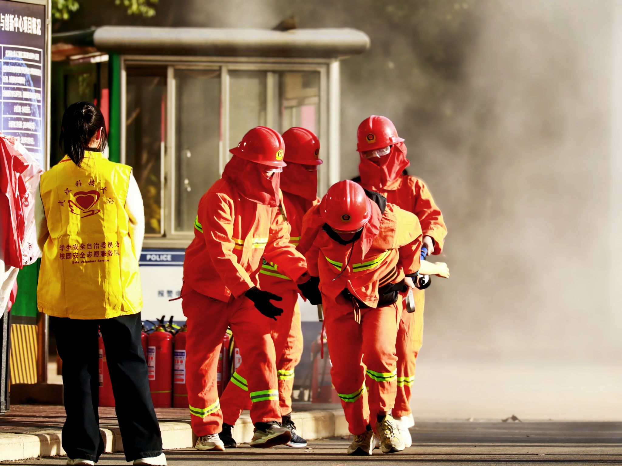 本次大赛将知识竞赛与技能实操融合,双轨并行普及校园安全知识,筑牢学生安全意识根基。实操内容包括连接消防水带灭火、穿戴消防防护服,使用灭火器扑灭初起火灾、协助转运伤员四个环节,以实战锤炼安全技能,推动学生从理论“旁观者”变身“实干者”。