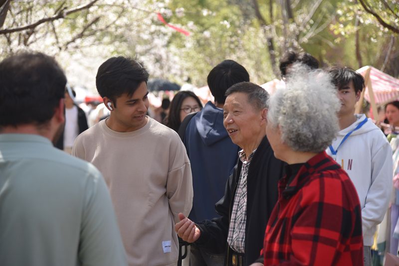 赏樱过程中,老人们还与前来赏樱的留学生进行了亲切的交流。他们用微笑和友好的话语拉近了彼此的距离,分享着对樱花的喜爱和对春天的感受。留学生们的热情和好奇,也让老人们感受到了不同文化的碰撞与融合,增进了彼此之间的了解和友谊。